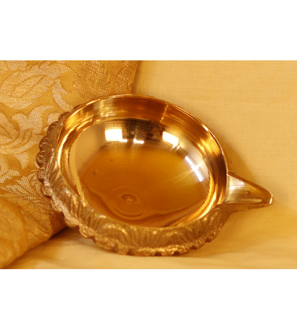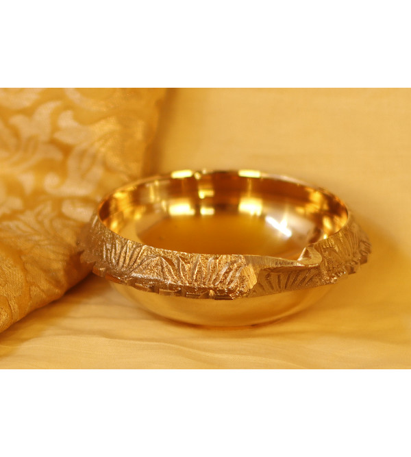 Diya de Latón Religiosa Hecha a Mano, Modelo Redondo Kuber, para Oración y Decoración, Diseño Tradicional Indio Chapado en Oro para Diwali