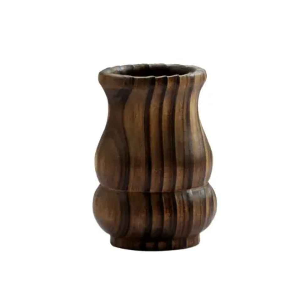 Jarrón Decorativo de Madera de Acacia Acanalado Hecho a Mano, Maceta de Madera en Forma de Calabaza para Centro de Mesa Rústico