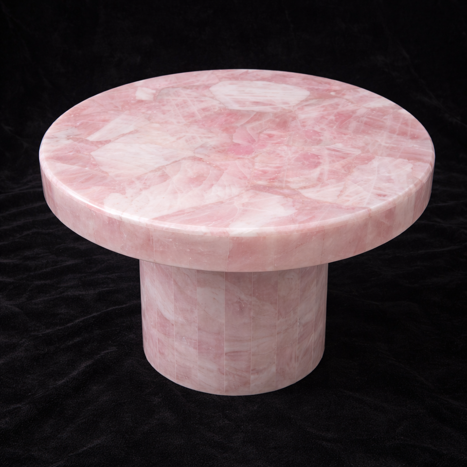 Mesa Redonda de Cuarzo Rosa Hecha a Mano, Muebles de Interior de Lujo y Decoración de Mesa de Lujo Hecha a Mano para el Hogar
