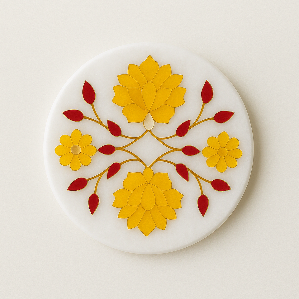 Posavasos con patrón Floral redondo hecho a mano, soporte decorativo para bebidas con flores amarillas y rosas, decoración moderna para el hogar hecha de piedra