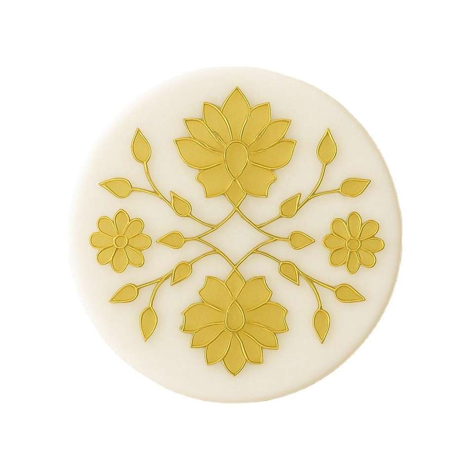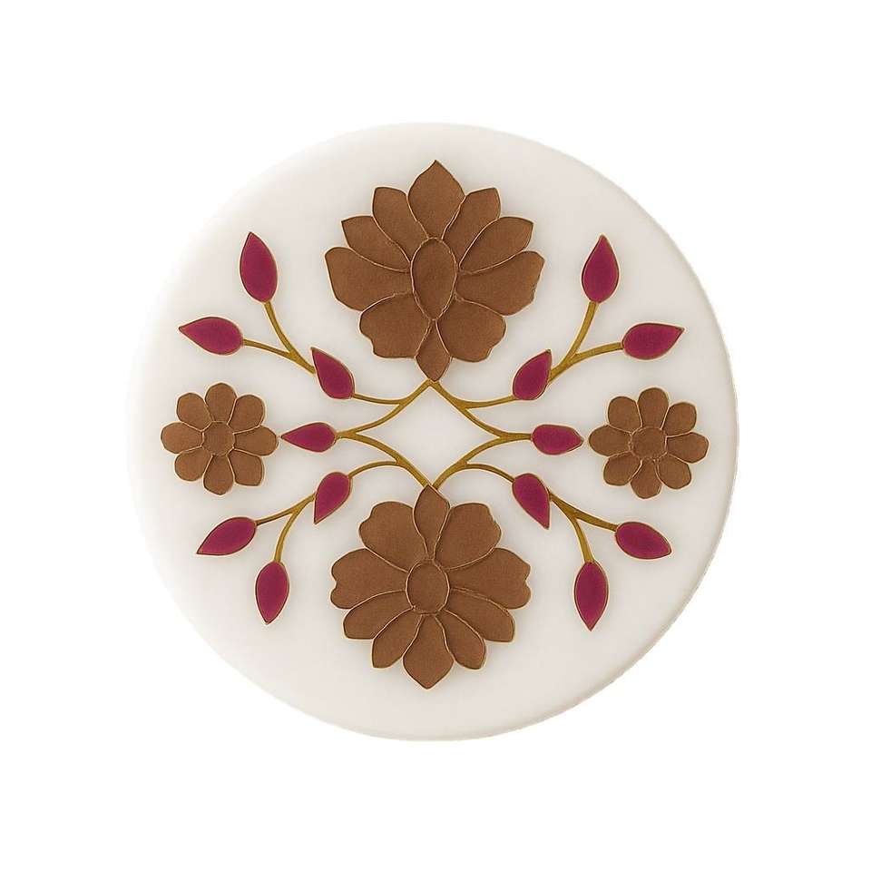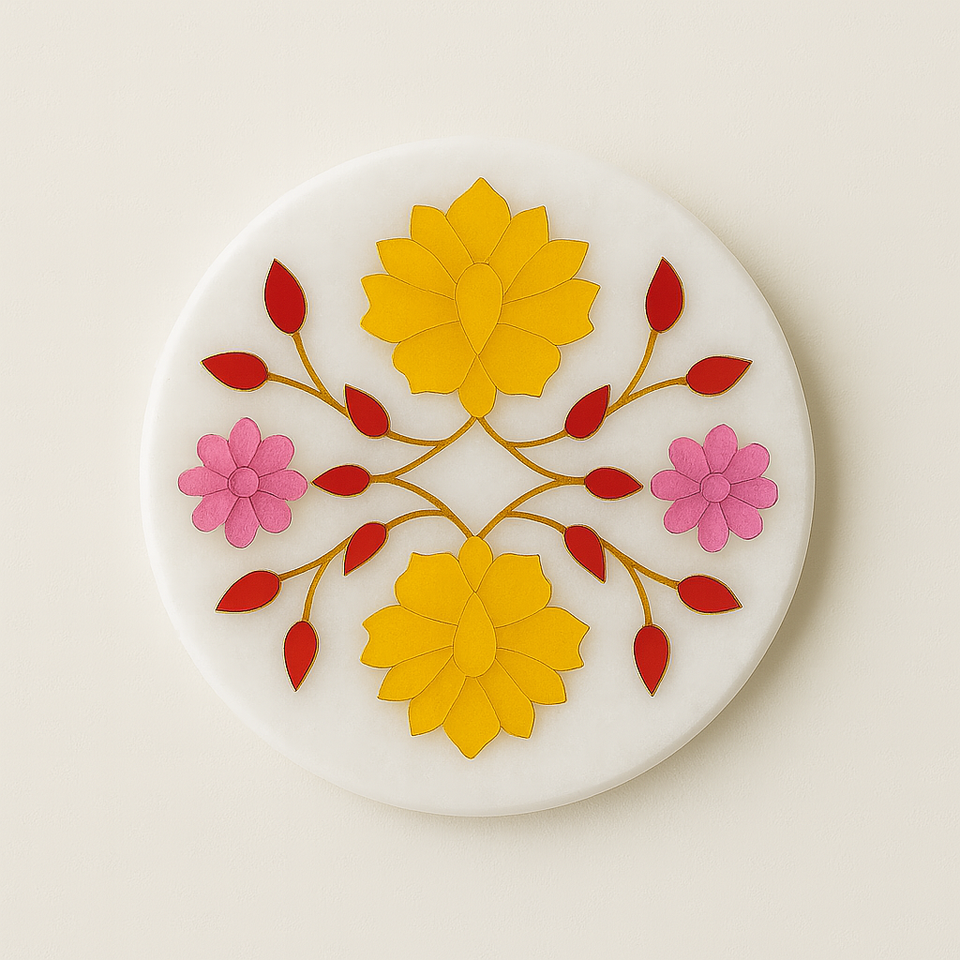 Posavasos Redondo Hecho a Mano con Diseño Floral, Flores Amarillas y Rosas, Portavasos Decorativo, Decoración Moderna para el Hogar, Hecho de Piedra