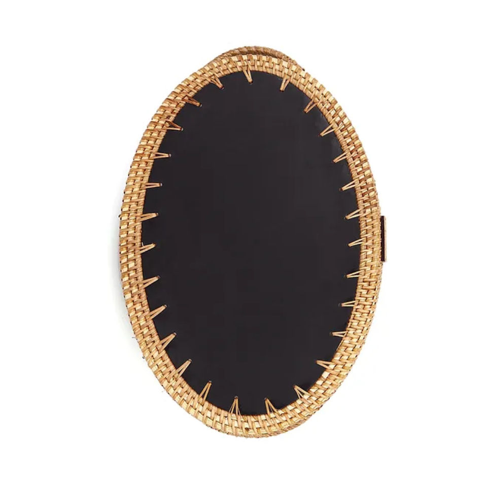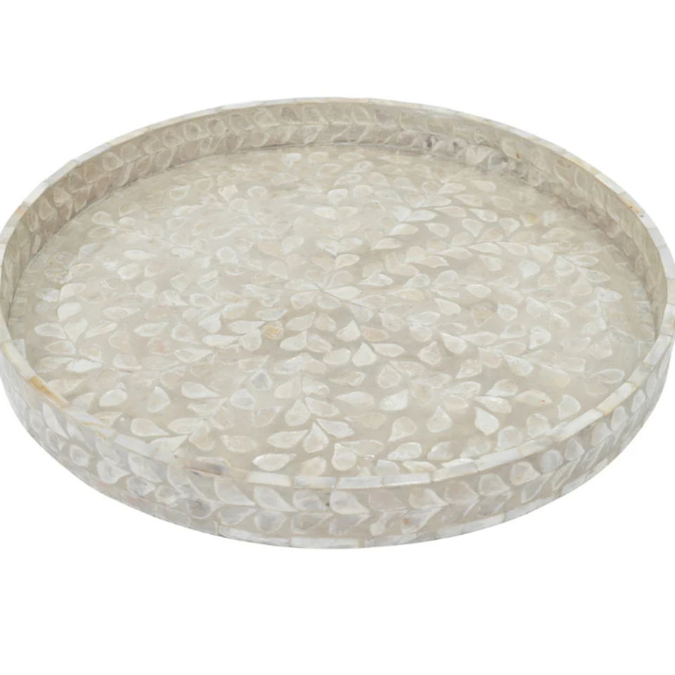 Bandeja redonda de ratán hecha a mano con incrustaciones de nácar, bandeja decorativa de mosaico de caña para mesa de café, cocina, decoración del hogar.
