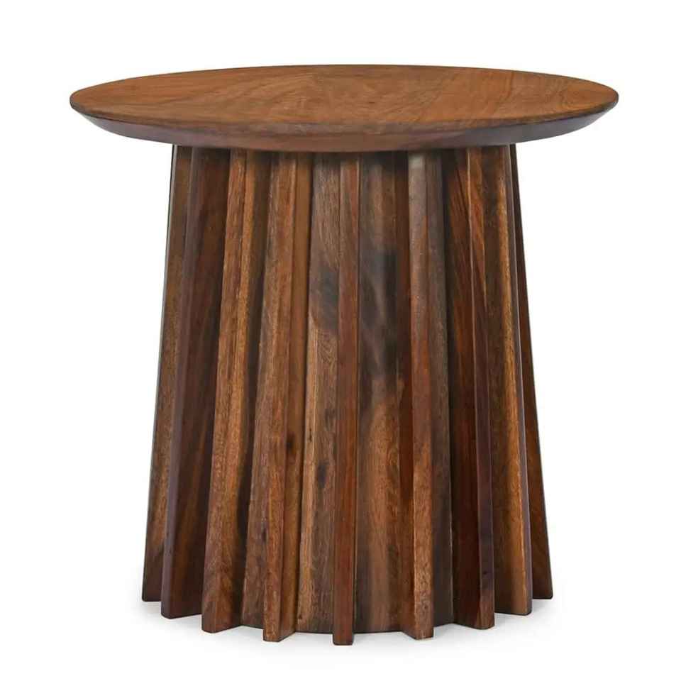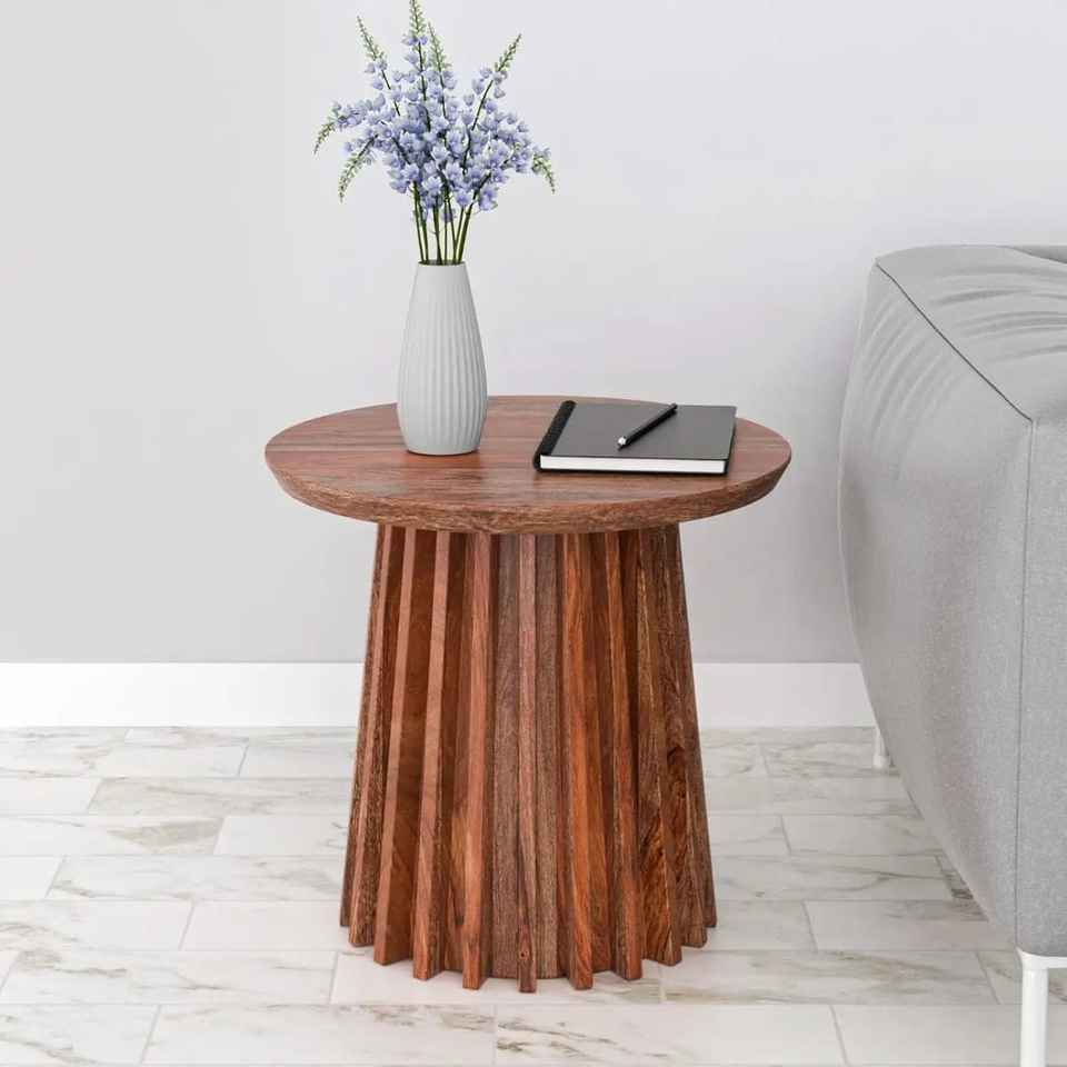 Juego de Mesas de Centro Redondas de Madera Hechas a Mano, Mesa de Centro Moderna con Base de Listones para Sala de Estar, Diseños de Muebles de Madera Sólida