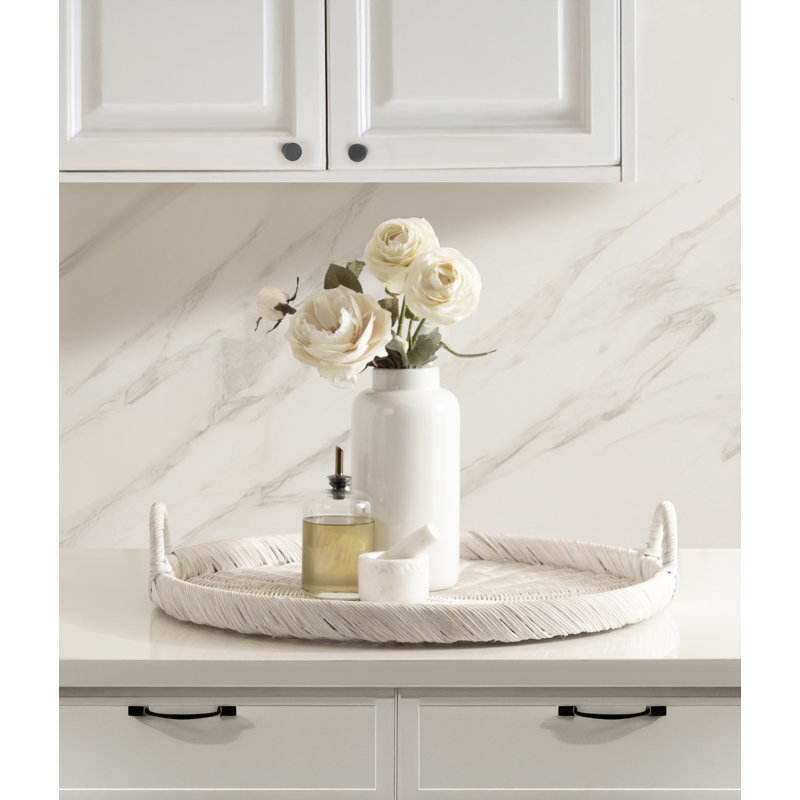 Bandeja de mimbre tejida redonda hecha a mano, plato de servicio decorativo para decoración del hogar