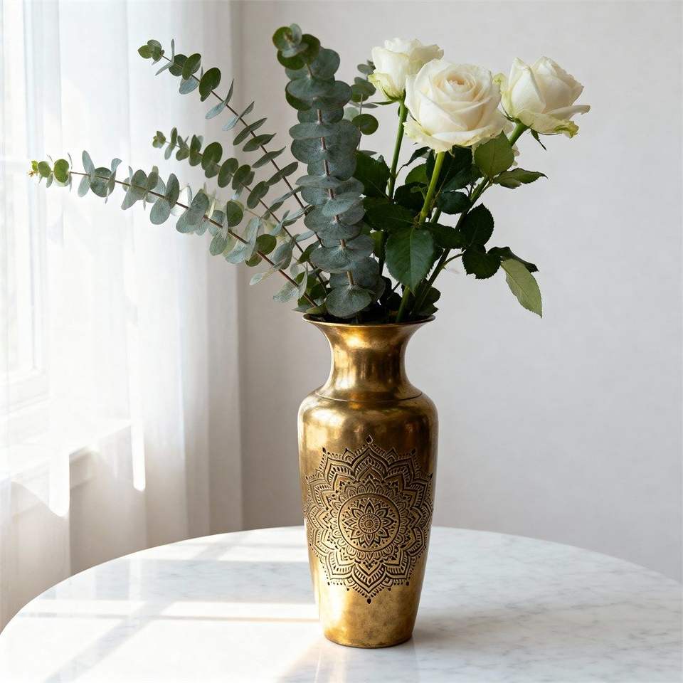 Jarrón de Metal de Latón Rústico Hecho a Mano, Estilo Martillado, Dorado, Decorativo, para Flores, Oficina, Bodas, Eventos