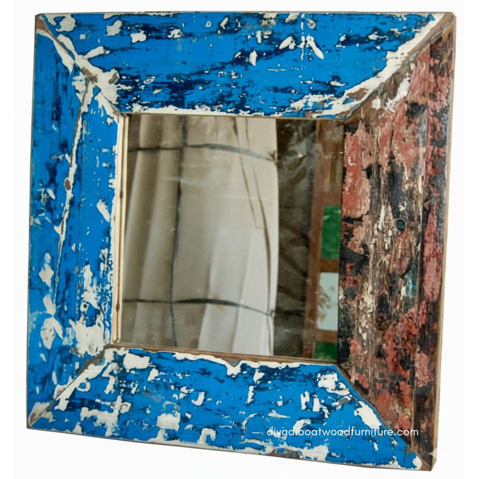 Espejo Decorativo de Pared Rectangular DIVADI, Hecho a Mano con Madera de Barco Reciclada, Estilo Rústico y Ecológico, 120x80cm, para Sala de Estar o Dormitorio