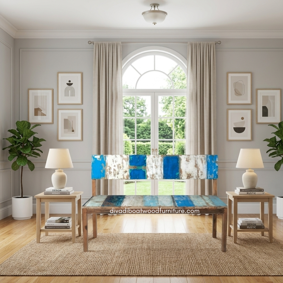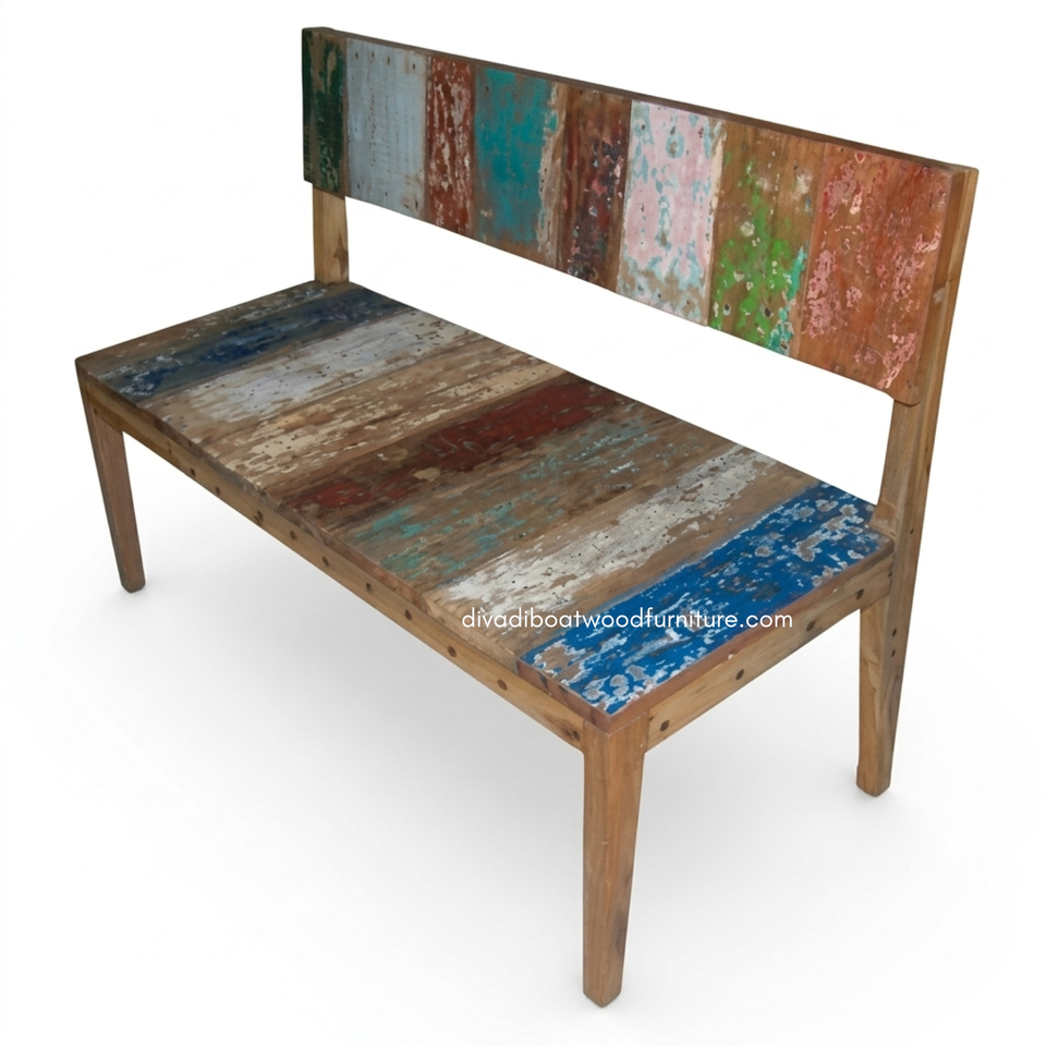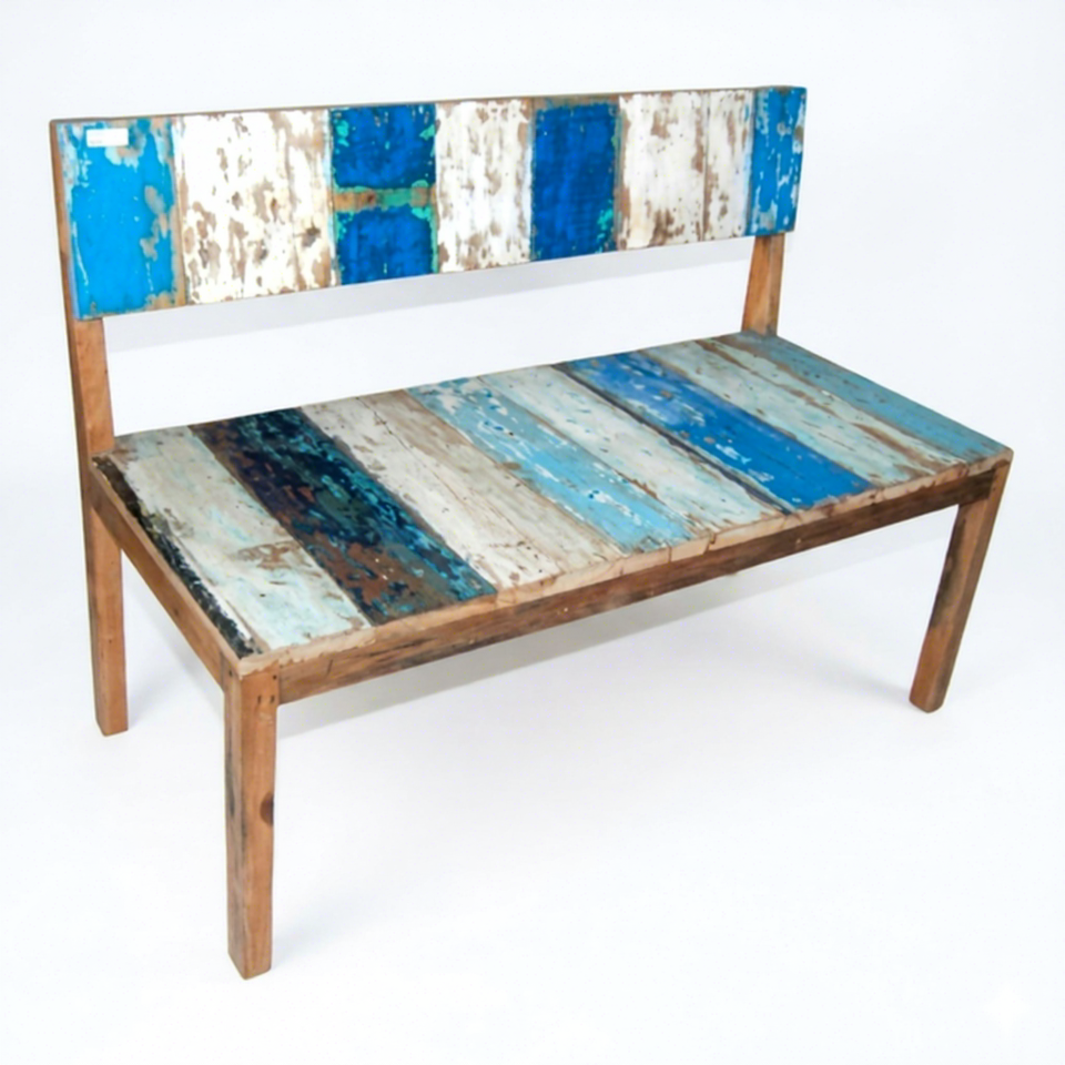 Sofá Esquinero Rústico de Dos Plazas Hecho a Mano, Desmontable, de Madera de Barco Reciclada, Ecológico, Color Natural, para Interiores y Exteriores, Apartamentos y Hoteles