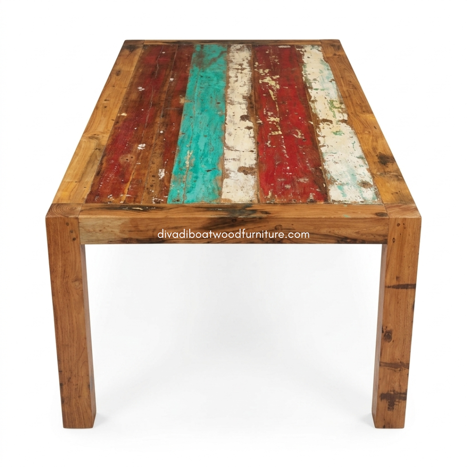 Mesa de Comedor Rústica Hecha a Mano de Madera Maciza de Teca, Desmontable, de Madera Reciclada de Barco, para Interiores y Exteriores, Muebles Duraderos para el Hogar y la Villa