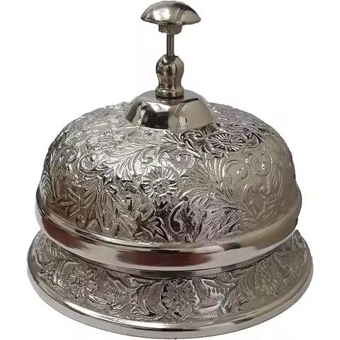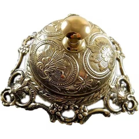 Campana de Servicio Artesanal, Campana de Latón Macizo Ornamentada para Mostrador de Hotel, Campana de Servicio para Hoteles, Escuelas y Restaurantes