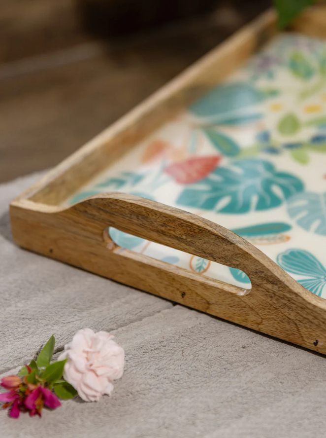 Conjunto Hecho a Mano Tres Floral Rosa Amarillo Esmalte Remolino Bandeja de Madera Manijas Convenientes Desechables Decoración PARA EL Hogar Característica