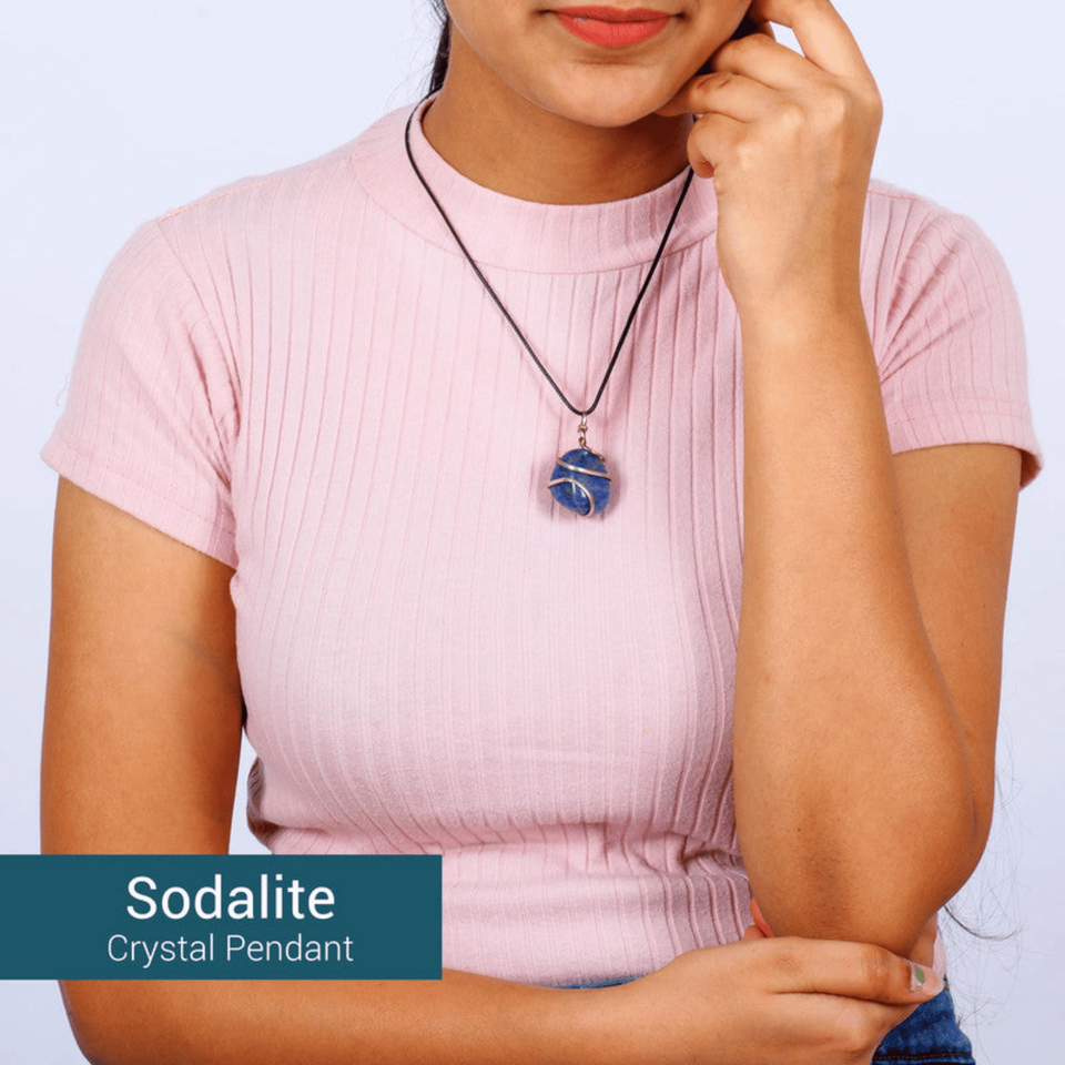 Product name:Sodalite Tumbled Stone Wire Wrapped Pendant