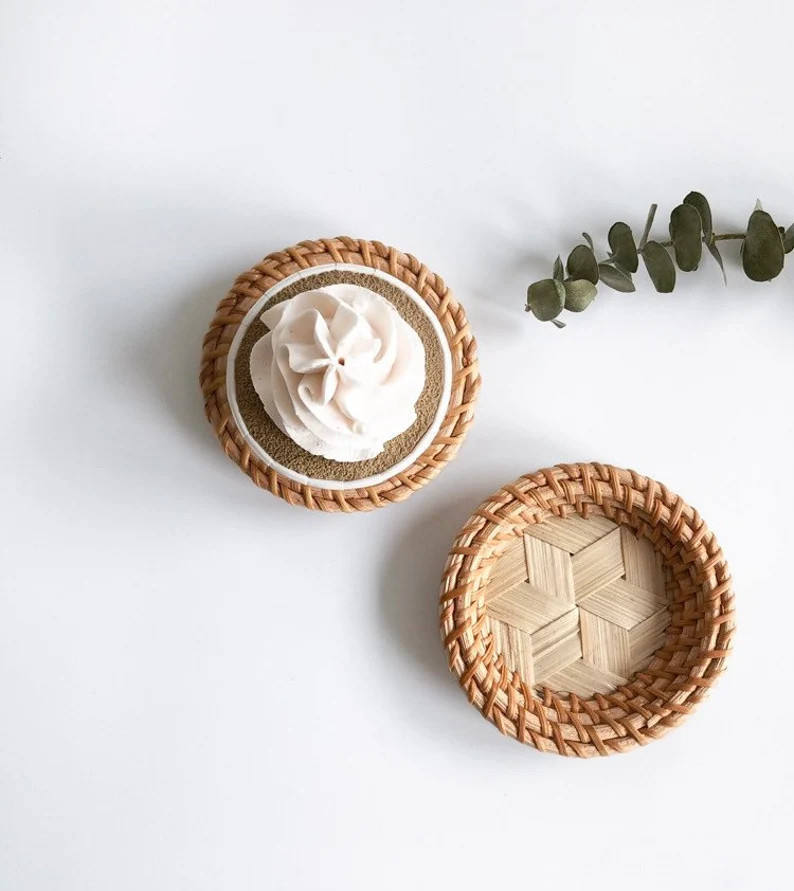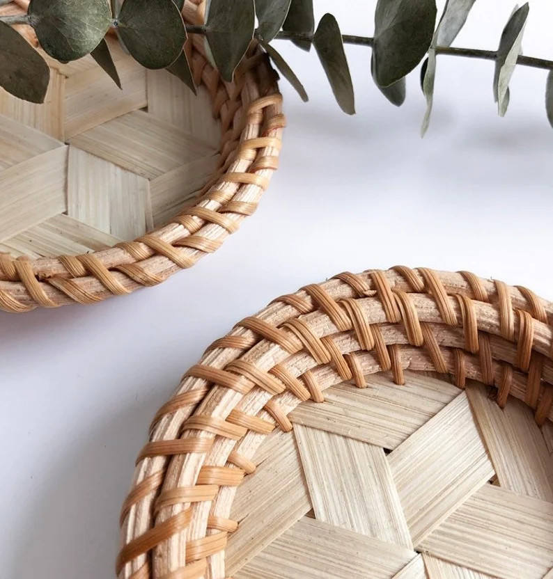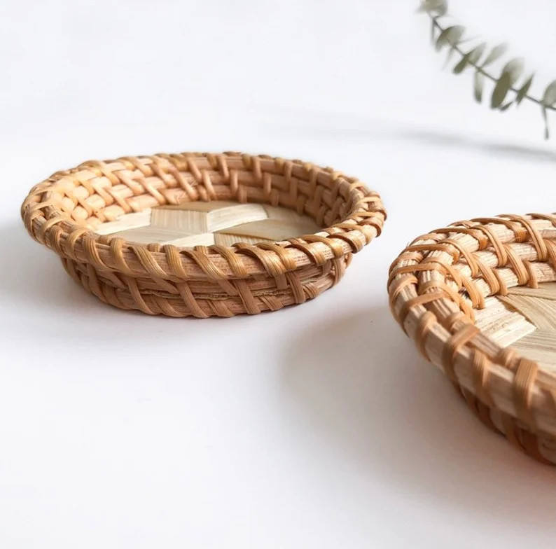 Posavasos de mimbre y bambú para sala de estar y comedor, accesorio hecho a mano con combinación especial, placas Base, almohadillas calientes aisladas