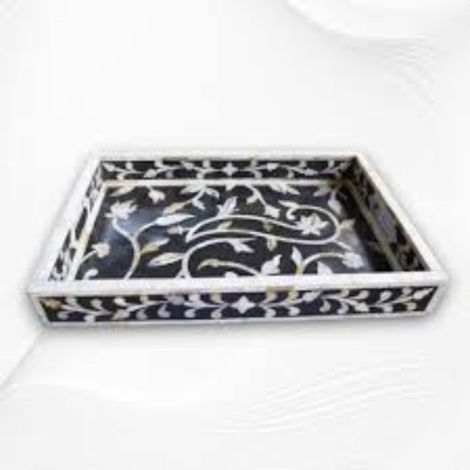 Bandeja de servir cuadrada artesanal con incrustaciones de nácar, bandeja otomana decorativa de madera de lujo con patrón de rombos, precio de oferta.