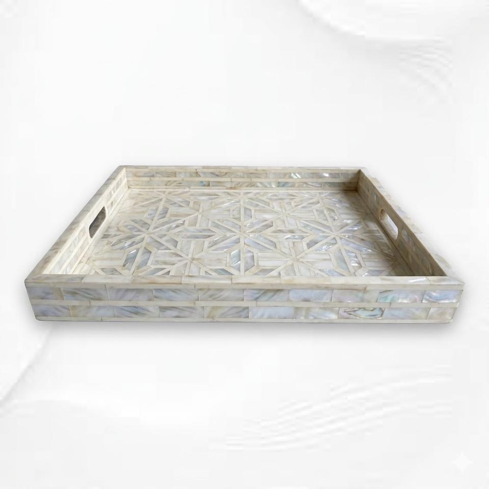 Bandeja de servir cuadrada artesanal con incrustaciones de nácar, bandeja otomana decorativa de madera de lujo con patrón de rombos, precio de oferta.