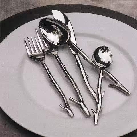 Juego de cubiertos de acero inoxidable hechos a mano, vajilla de alta calidad para hotel, restaurante y servicio de catering