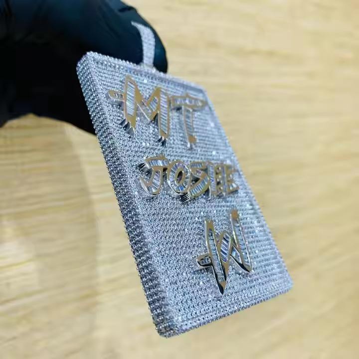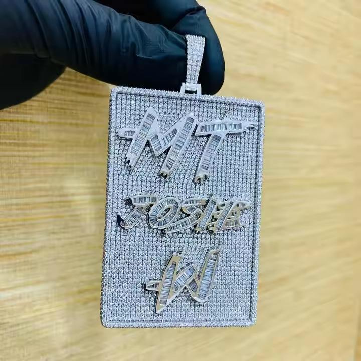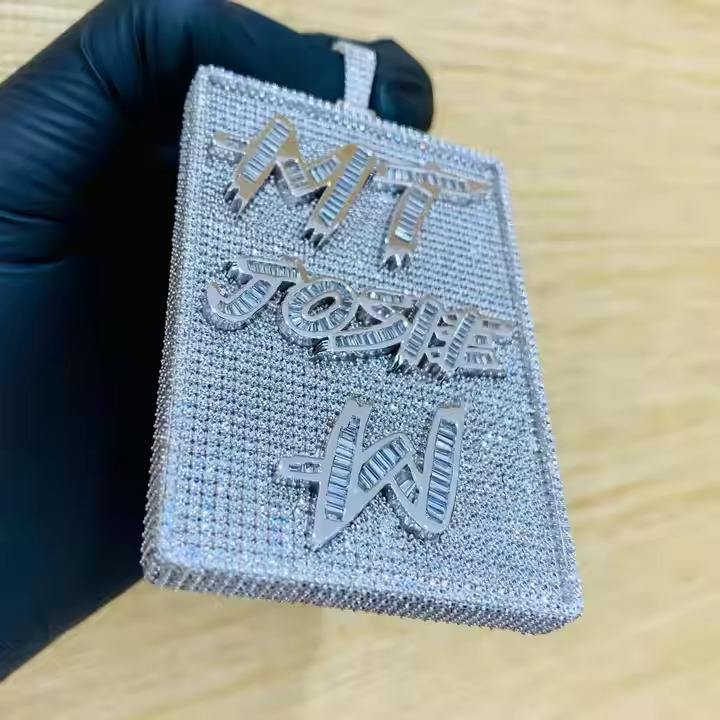Colgante de Plata de Ley Hecho a Mano con Moissanita de Corte Princesa de 6ct, Diseño de Dibujos Animados, Elegante Joyería HipHop para Niños y Bodas
