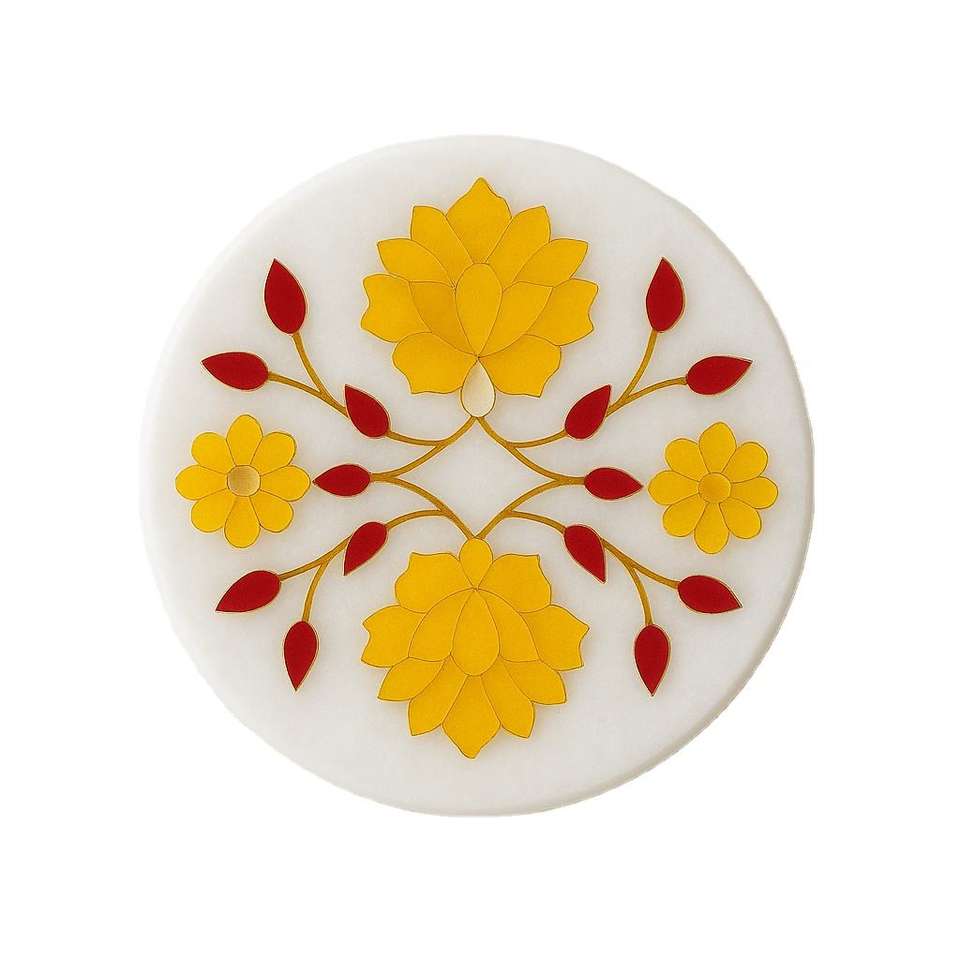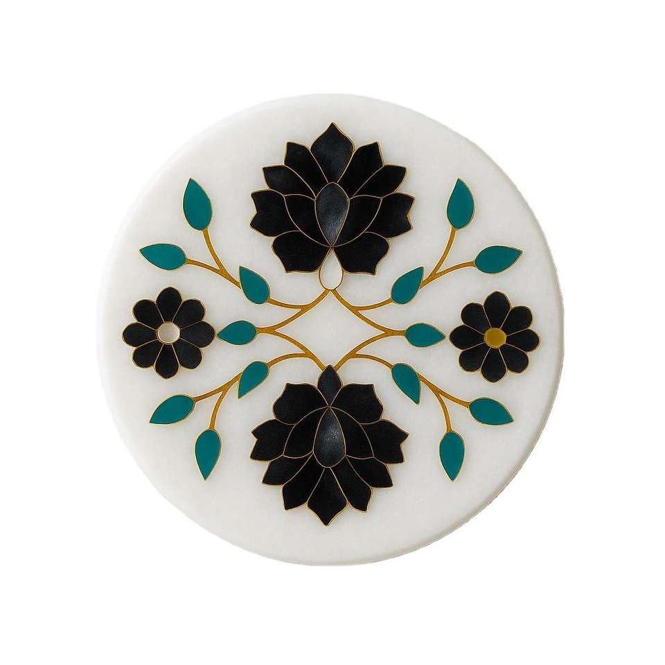 Posavasos Artesanal de Piedra con Diseño Floral Clásico Rosa y Hojas Teal, Decorativo, Ecológico y Elegante para Mesa
