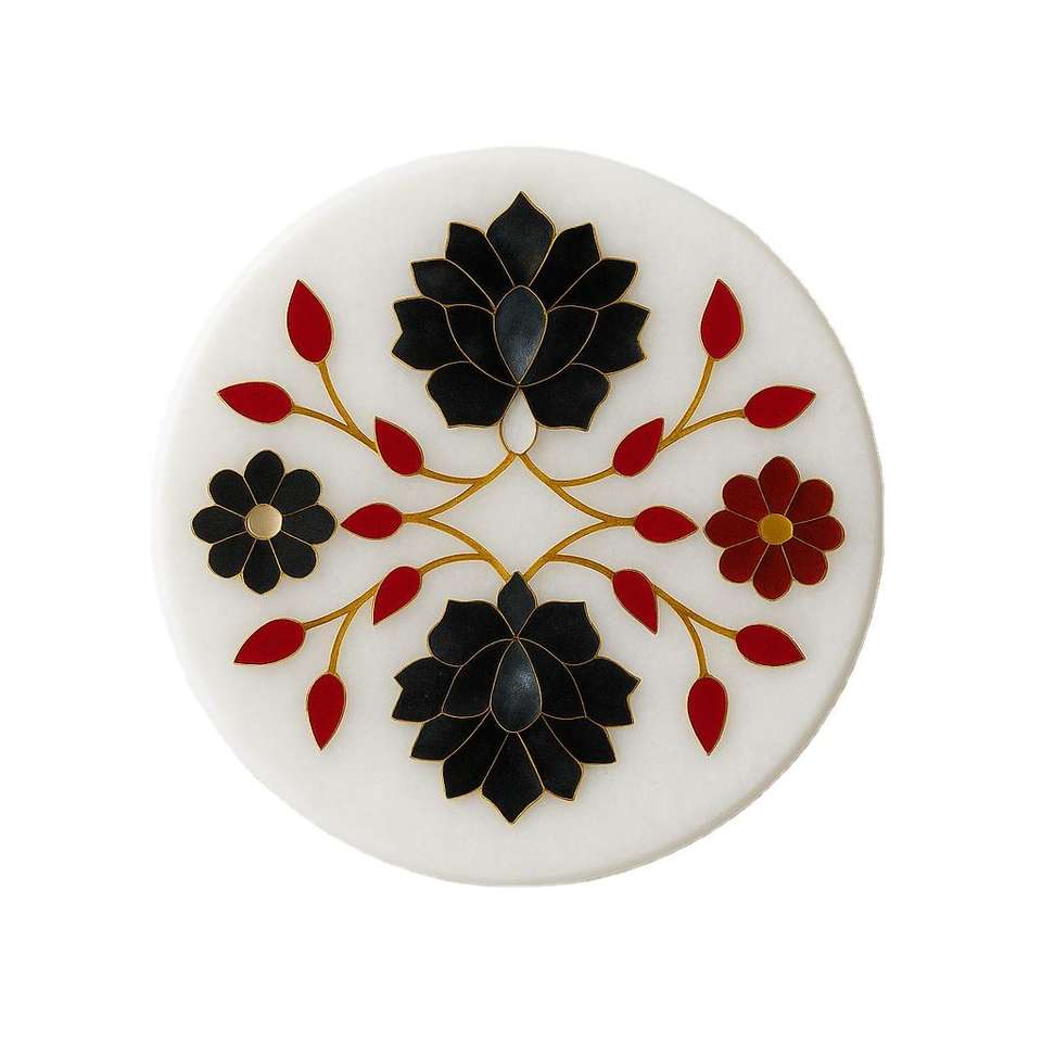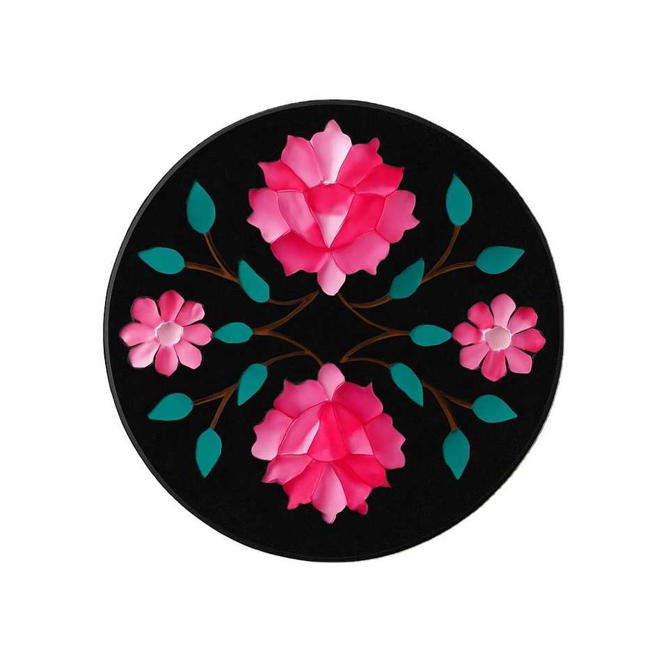 Posavasos Artesanal de Piedra con Diseño Floral Clásico Rosa y Hojas Teal, Decorativo, Ecológico y Elegante para Mesa
