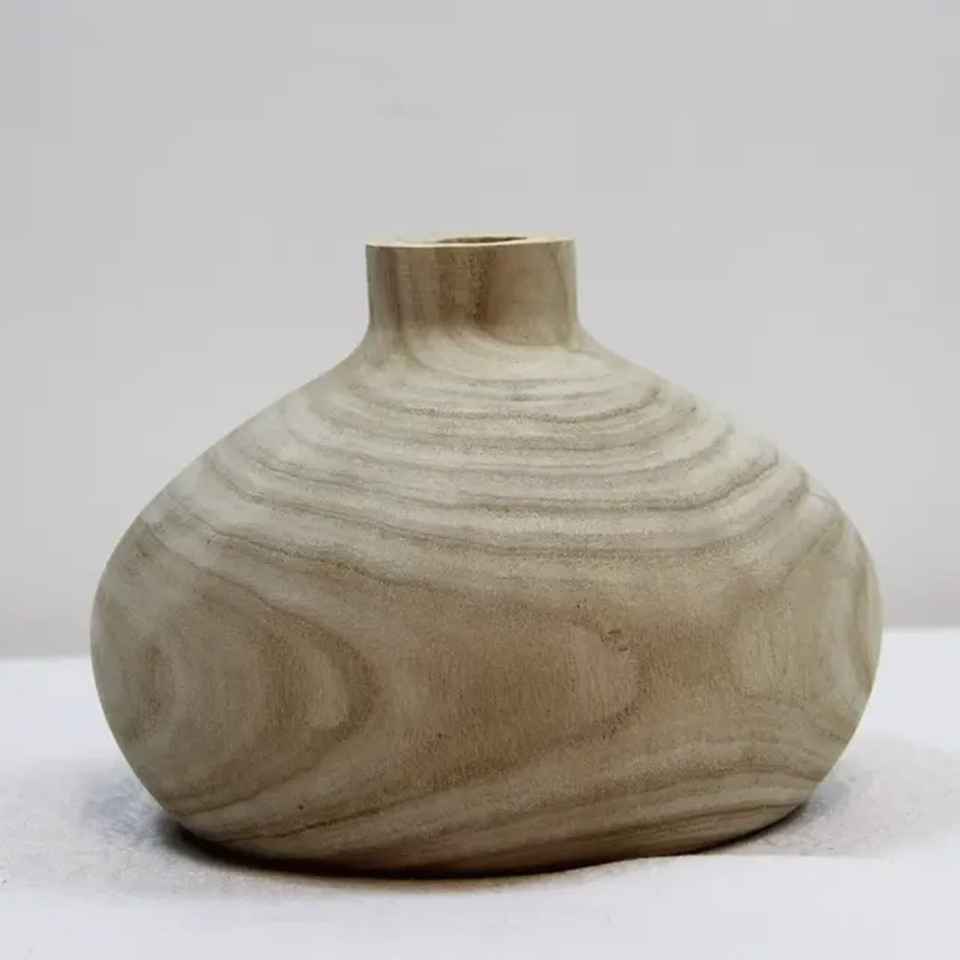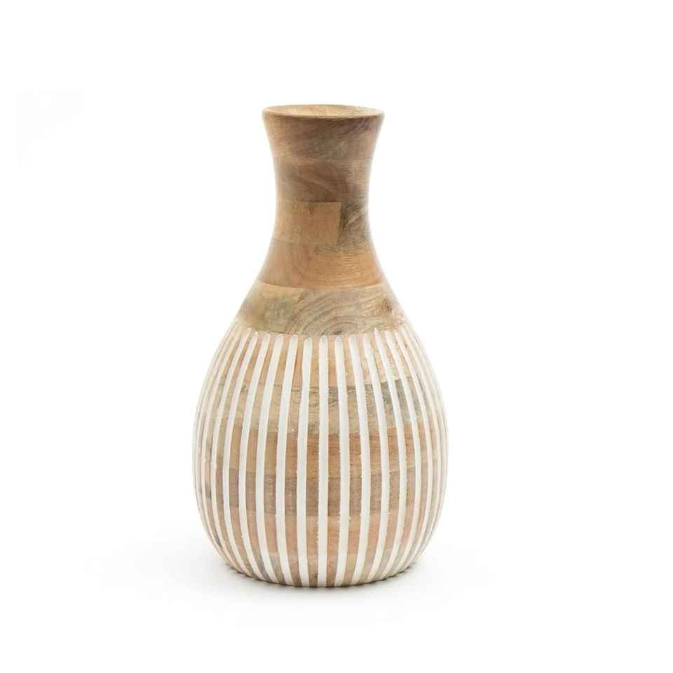 Jarrón de Madera de Mango Multicolor Rayado Hecho a Mano, Forma de Botella Alta, Maceta Decorativa de Madera para Decoración de Mesa Rústica o de Estilo Farmhouse