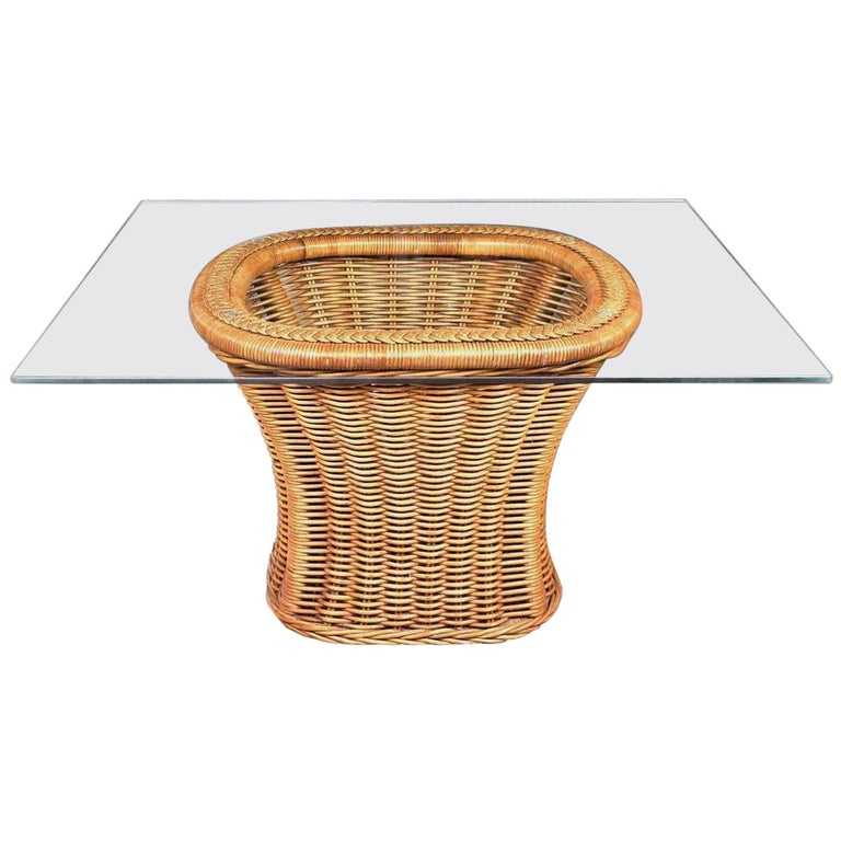 Mesa Auxiliar Elegante Hecha a Mano, Muebles para el Hogar y Hoteles, Mesa de Ratán, Nueva Mesa Auxiliar de Ratán de Diseño con Tapa de Vidrio, Decoración del Hogar