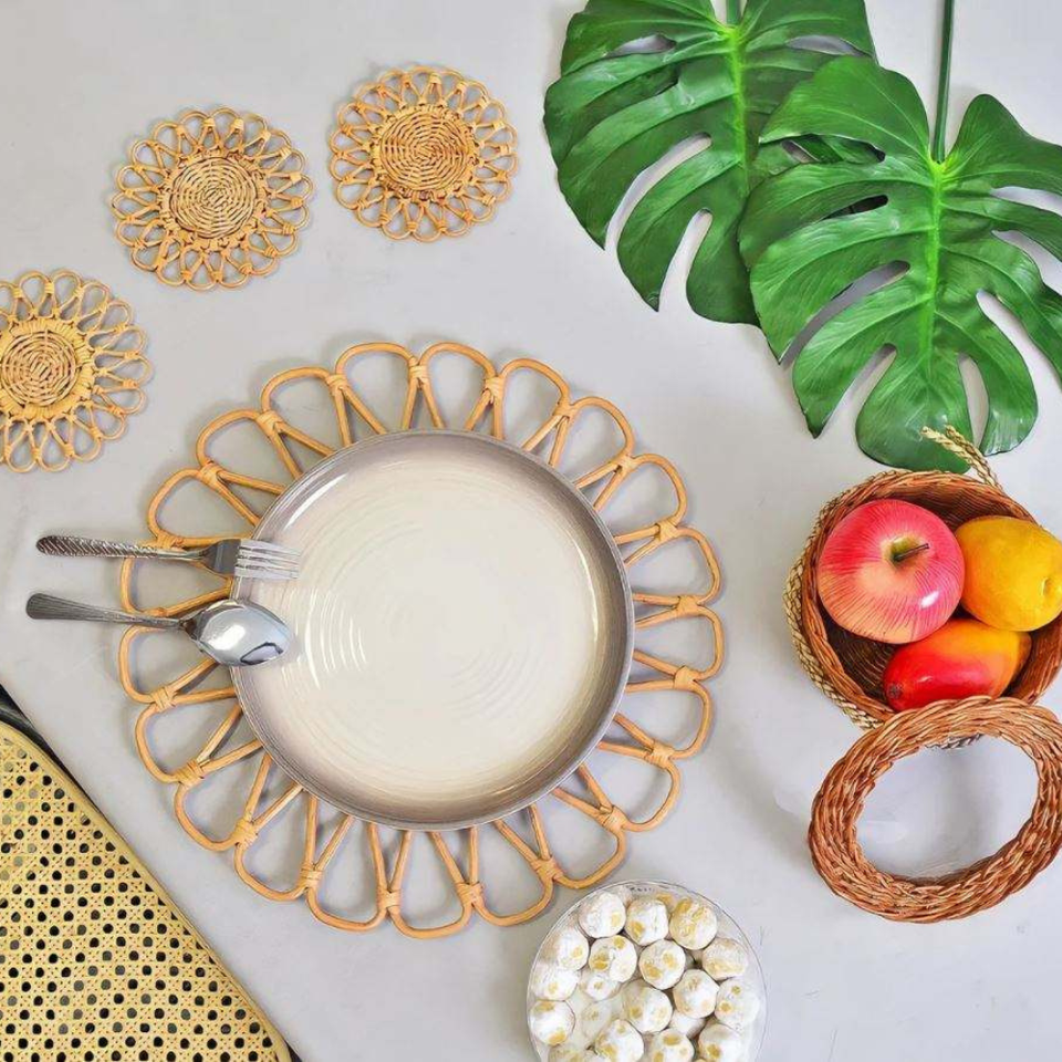 Placas de cargador de ratán rústicas sostenibles hechas a mano, Mantel Individual de mimbre ecológico Natural, cesta de aislamiento térmico Viet Nam