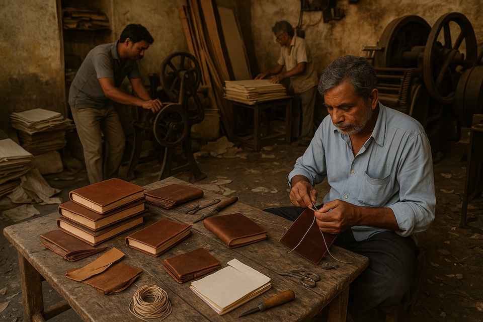 Diario de Cuero de Terracota Hecho a Mano de Lujo, Cubierta Grabada a Mano, Páginas Impresas en Grabado, Hecho de Cuero de Cabra y Oveja, Totalmente Reciclado