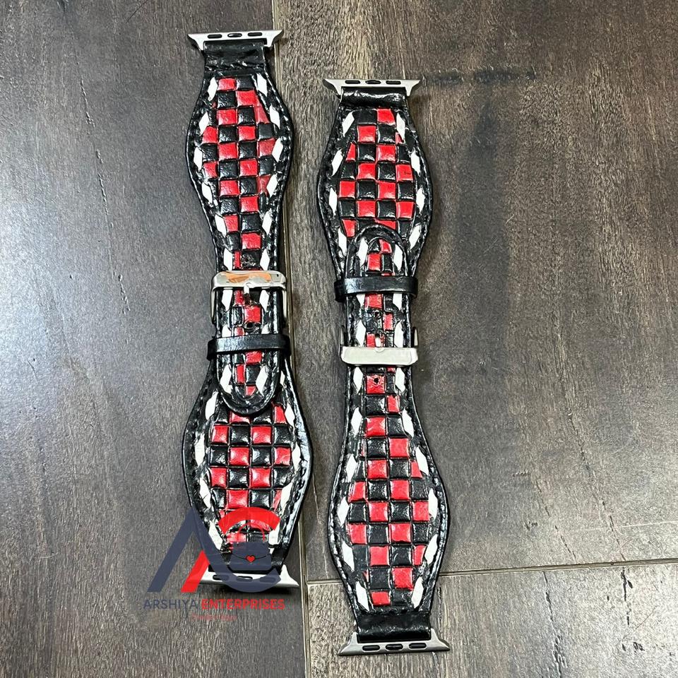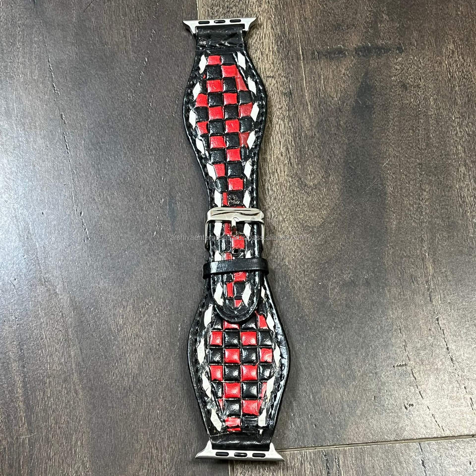 Nombre del producto:Correa de cuero repujado a mano a cuadros para reloj inteligente