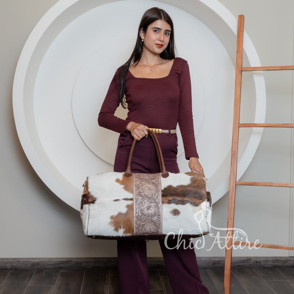 Nombre del producto:Bolso Duffle de Cuero Forrado con Textura de Pelo