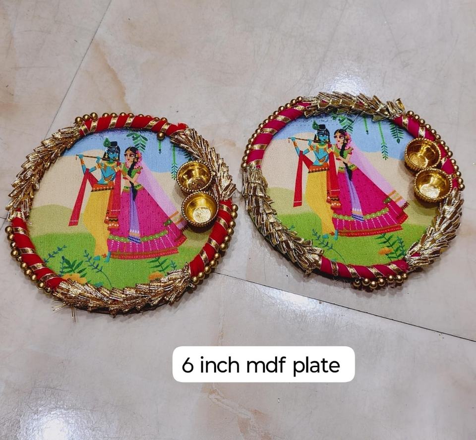 Plato de Pooja de MDF con Diseño Tradicional de Radha Krishna, Hecho a Mano, para Rituales Festivos y Decoración Espiritual