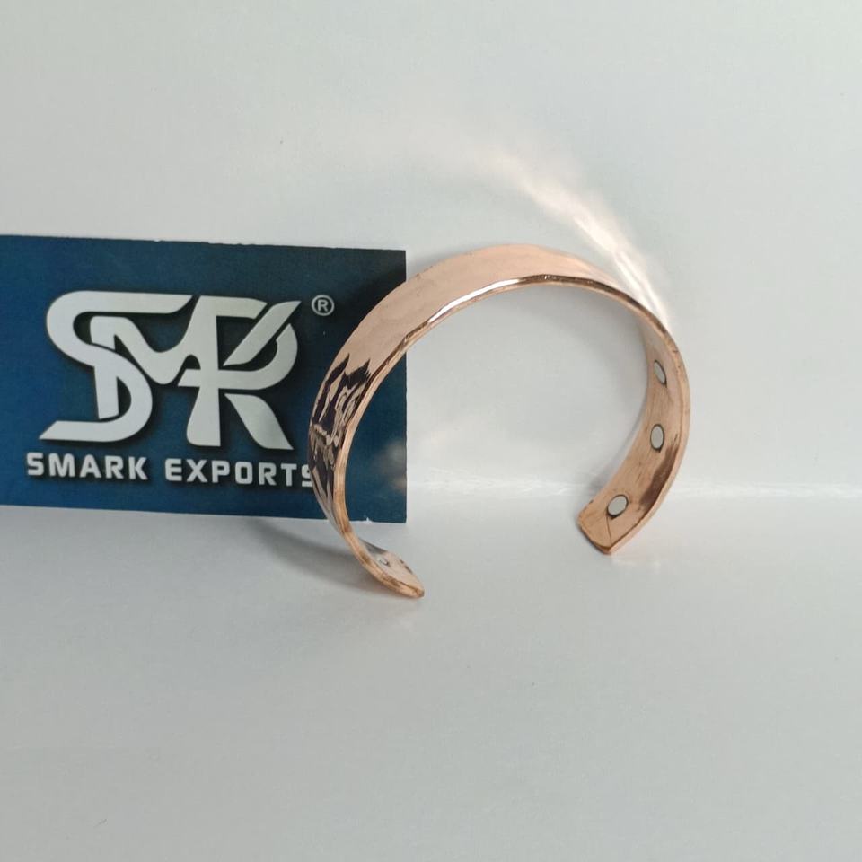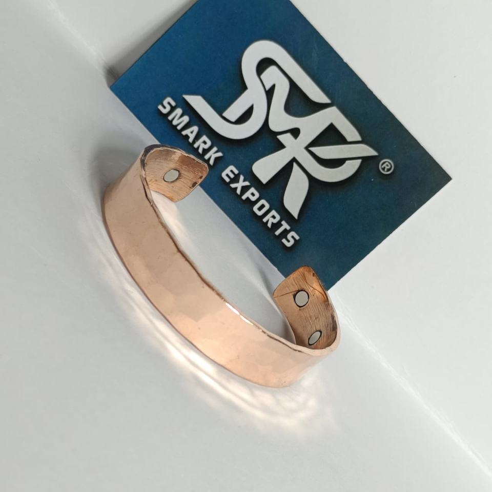 Brazalete de Cobre Magnético Ancho Tradicional Hecho a Mano con Acabado Liso, Joyería Curativa Ligera y Ajustable