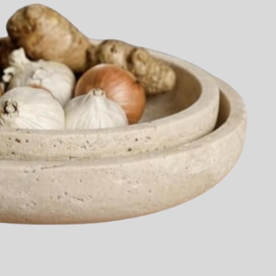 Cuencos para Servir Anidados de Piedra Travertino Hechos a Mano con Textura Natural para un Almacenamiento Elegante en la Cocina y una Decoración Moderna en la Encimera