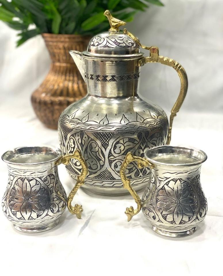 Juego de Jarra Turca de Cobre Hecha a Mano con Patrones Grabados y Revestimiento de Estaño Seguro para Alimentos, Ideal para Cenas Familiares, Uso Festivo y Regalos