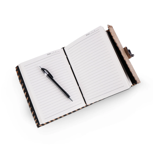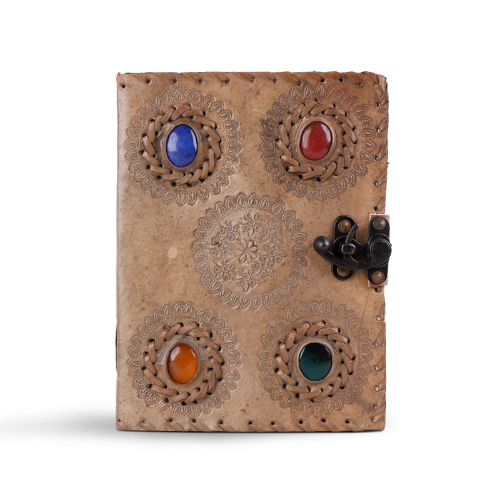 Product name:Four Stone Leather Journal, Embossed Goat Leather with Brass Lock