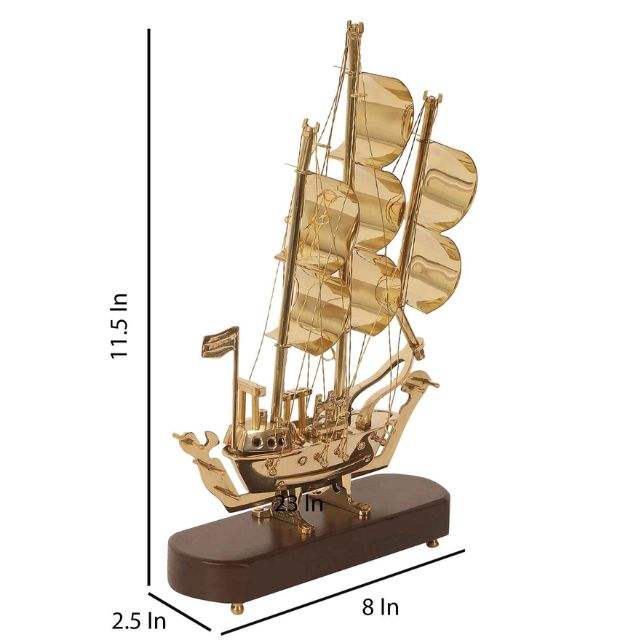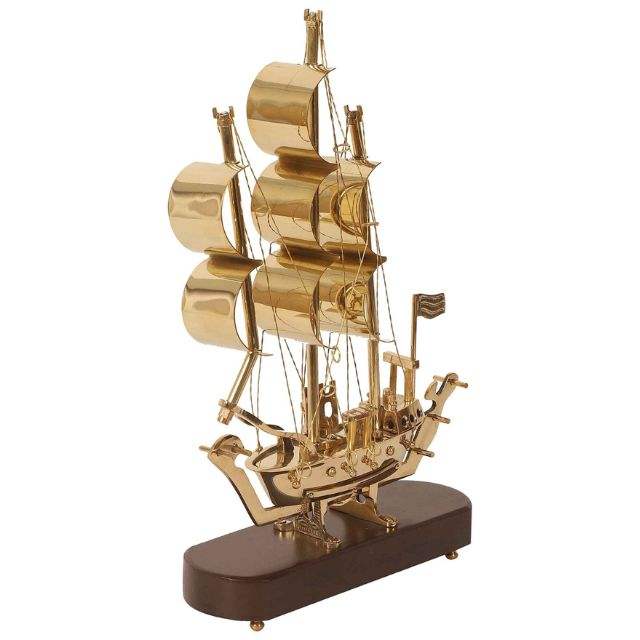 Barco de vela de mástil curvo vintage hecho a mano, instalación de mesa de latón y madera