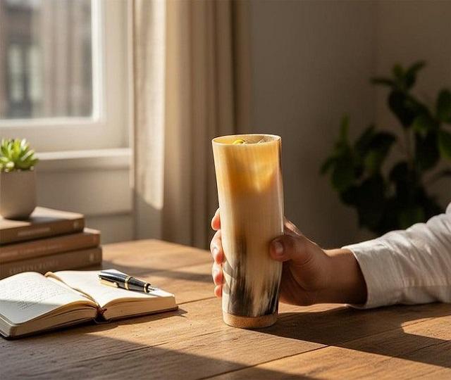 Taza de Cuerno Vikingo Corta, Hecha a Mano, Estilo Vintage, Natural, Pulida, Estilo Animal, Cuerno de Búfalo, Tacto Real, Tamaño Personalizado