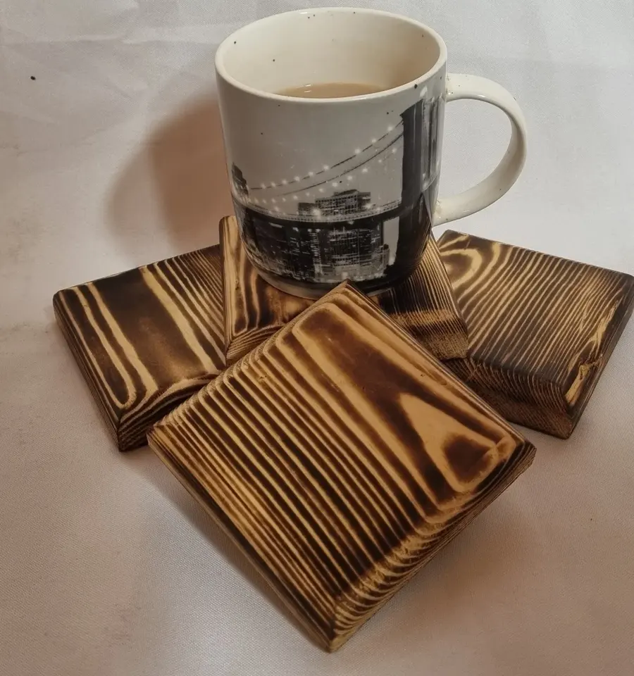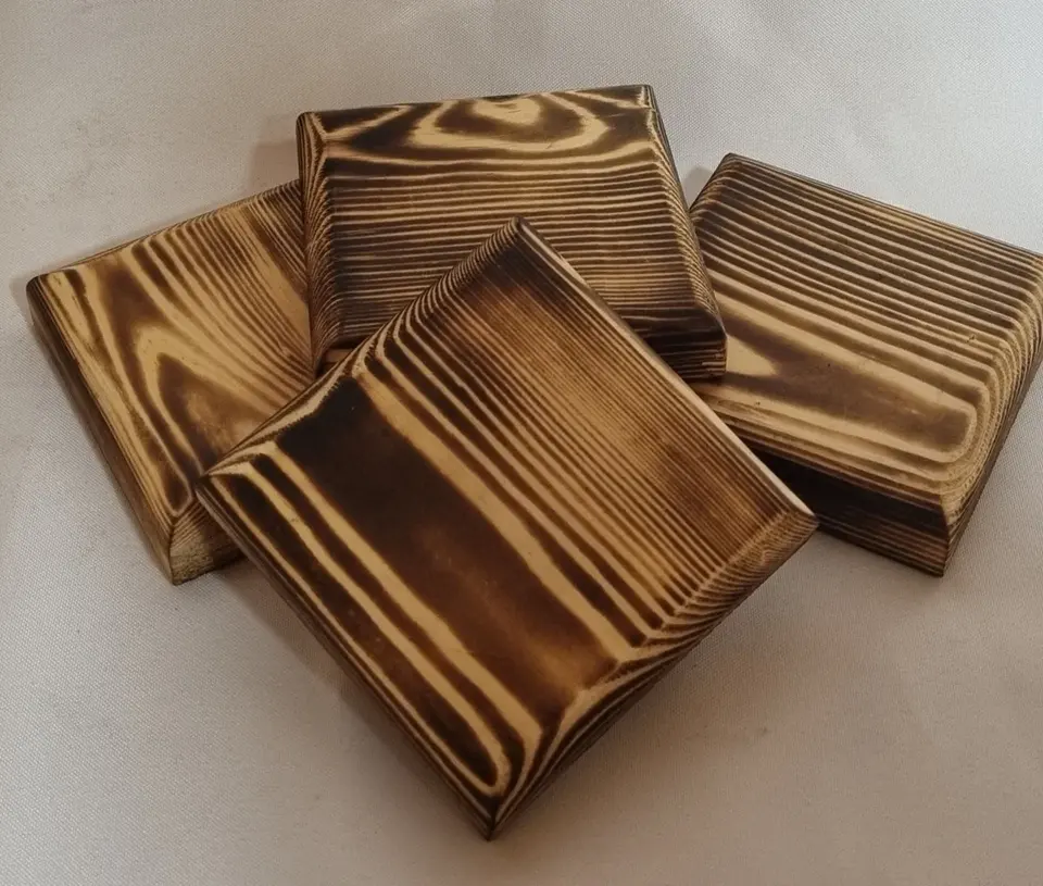 Posavasos Cuadrados de Madera de Nogal Hechos a Mano, Vajilla Premium para Hogares Modernos, Bodas, Patrones Personalizables, Diámetro para Exportación