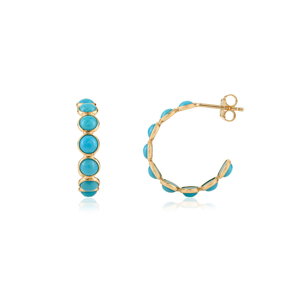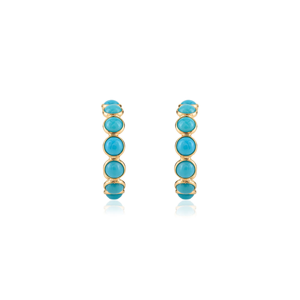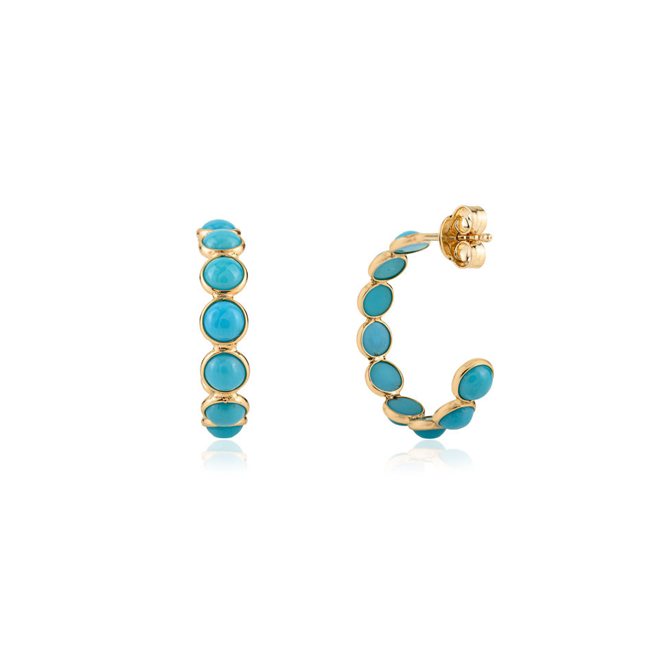 Pendientes de Aro en Forma de C Minimalistas con Turquesa de Corte Redondo, Hechos a Mano, Regalo de Boda, Oro Amarillo Sólido de 18K, Nuevas Joyas Recién Llegadas