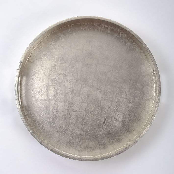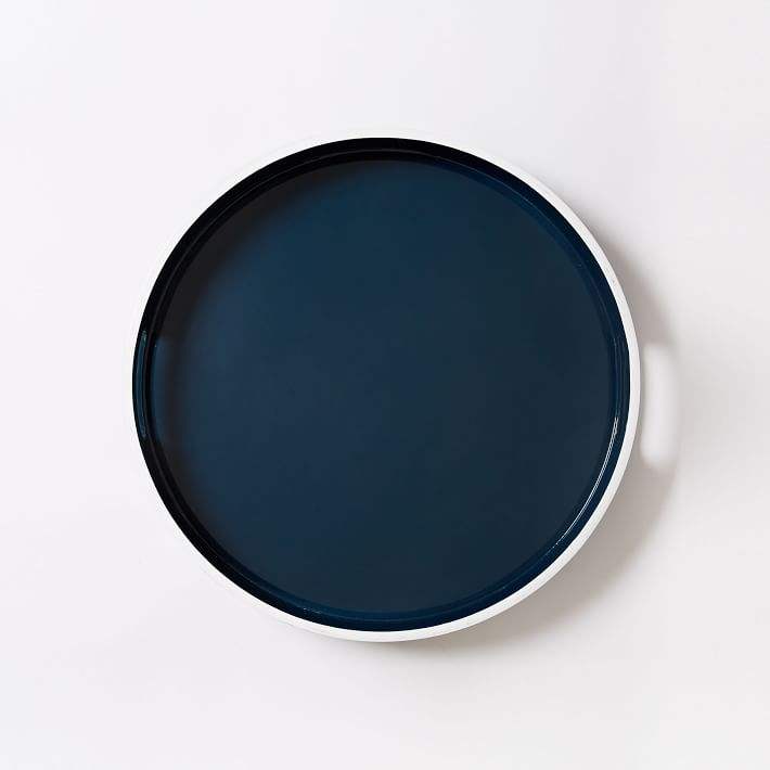 Bandeja de servicio lacada redonda con borde blanco artesanal con asa
