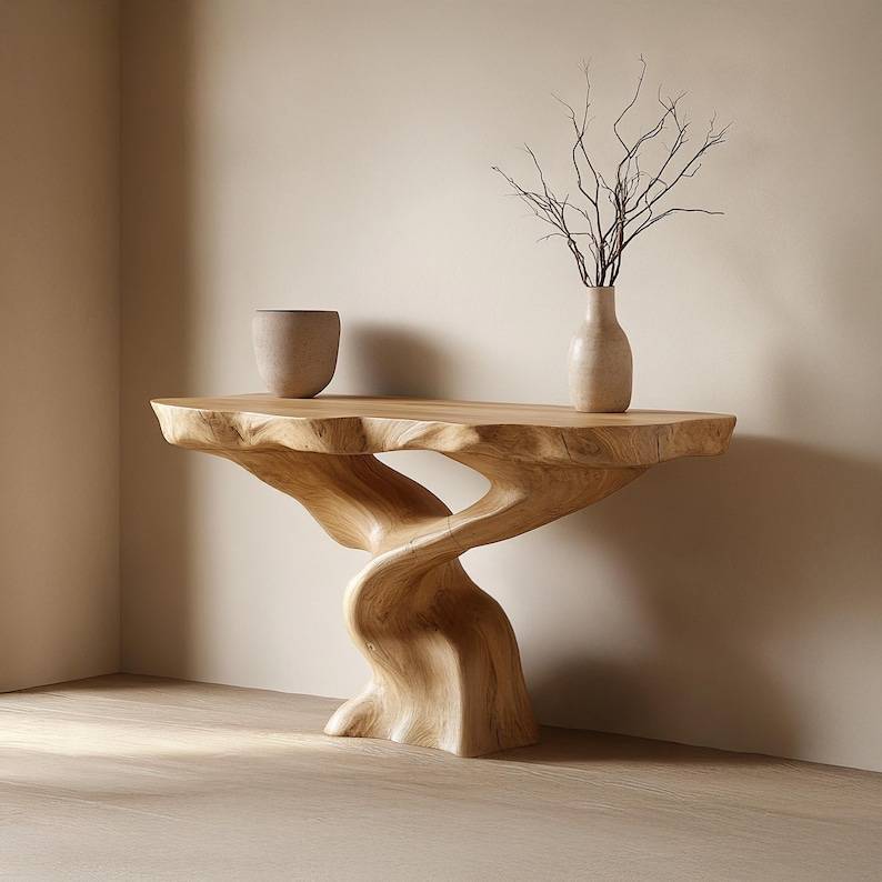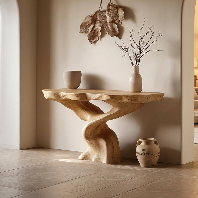 Mesa Consola de Madera Hecha a Mano, Mesa Estilo Rústico, Mueble Único para Decoración de Sala de Estar
