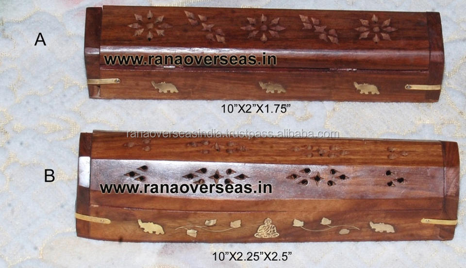 Nombre del producto:Incrustación de latón pequeño ataúd de madera quemador de incienso cajas