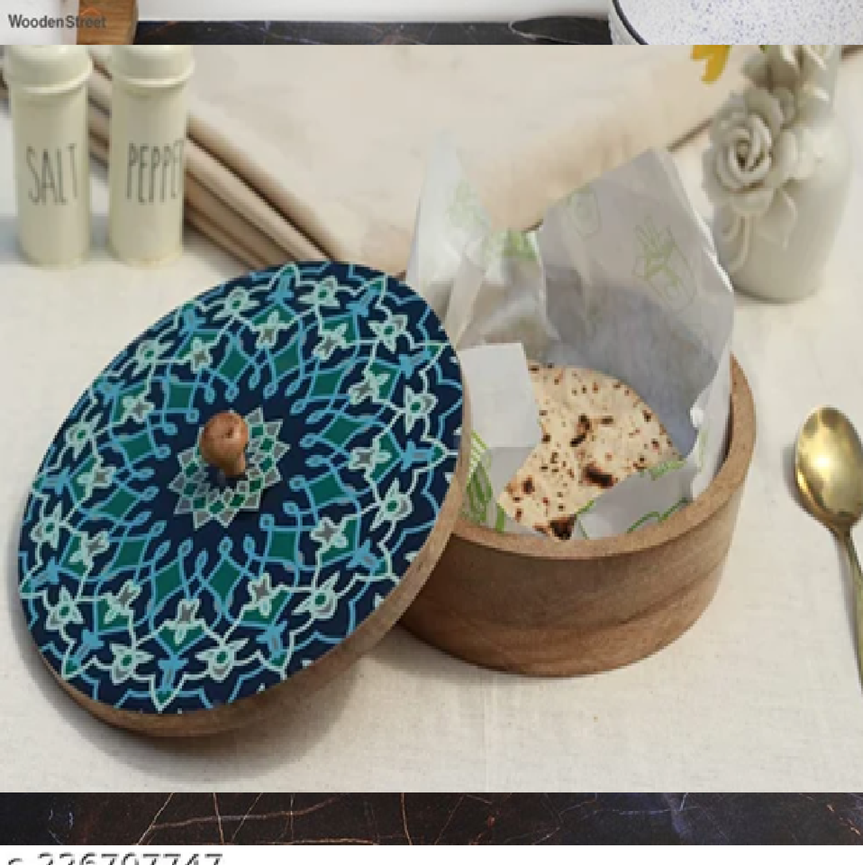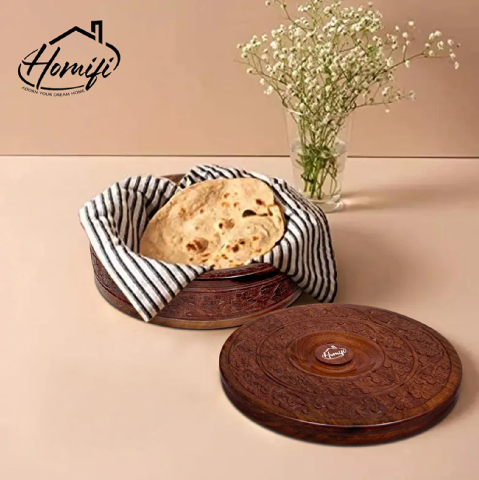Caja Roti de madera hecha a mano con pinzas de forma redonda de alta calidad, caja Chapati con tapa desmontable de proveedor indio