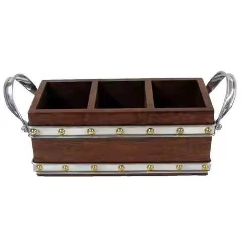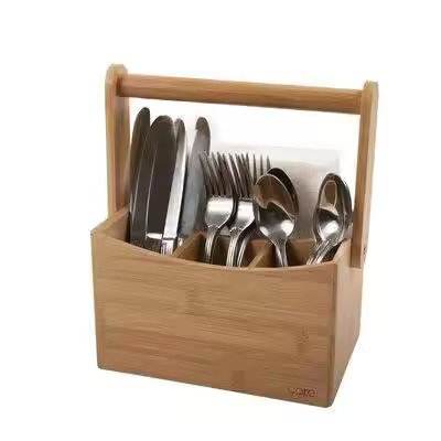 Cesta de Madera Artesanal con Asa, Diseño Personalizado para Cocina, Hotel, Servicio, Porta Cubiertos, Organizador de Almacenamiento