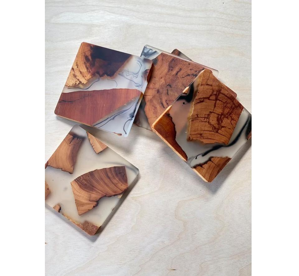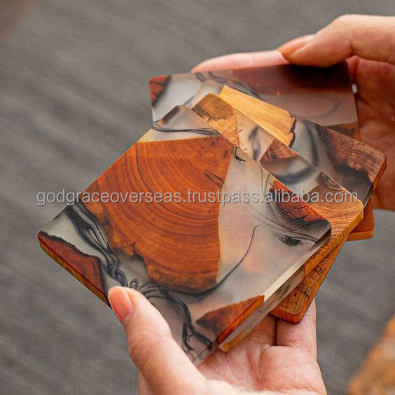 Posavasos de madera cuadrados hechos a mano de estilo americano con resina epoxi Acabado de nogal natural Grabado láser Opción de logotipo Mejor precio