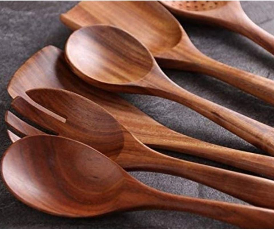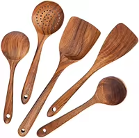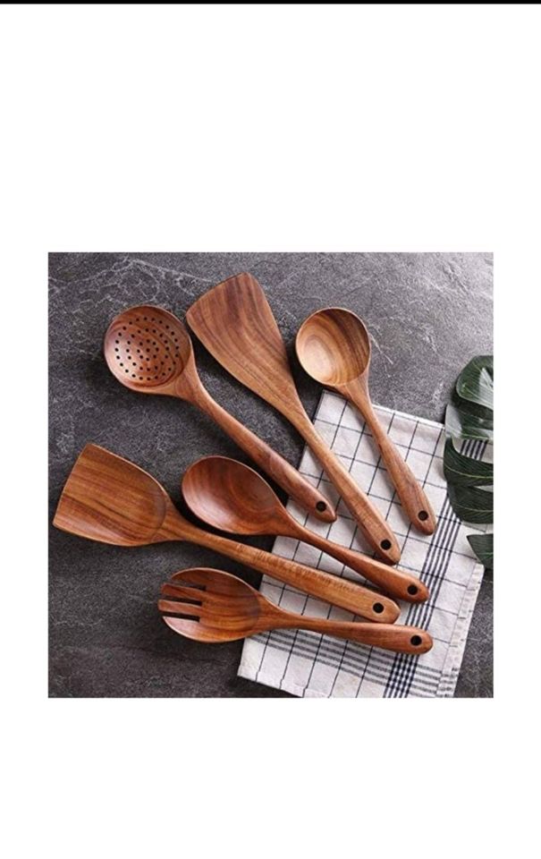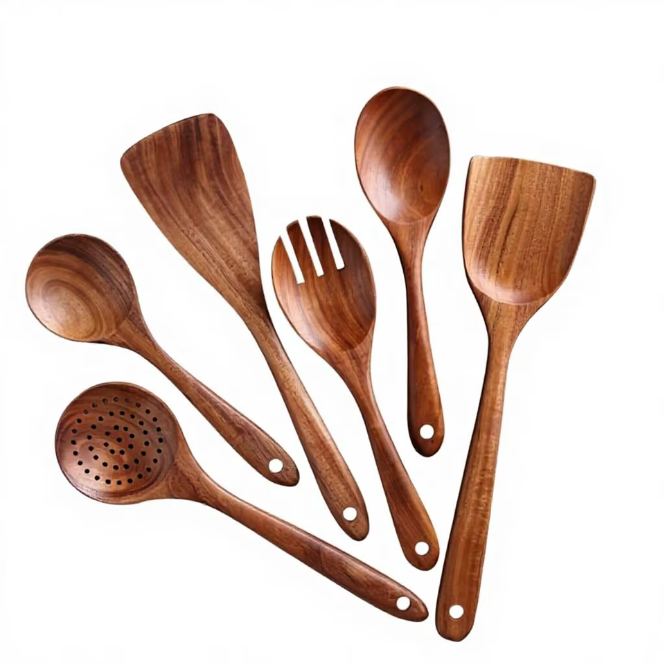 Juego de Utensilios de Cocina de Madera Hechos a Mano, 6 Piezas: Espátula, Cuchara, Cucharón, Espumadera, Herramientas de Cocina Antiadherentes, Seguras y Ecológicas