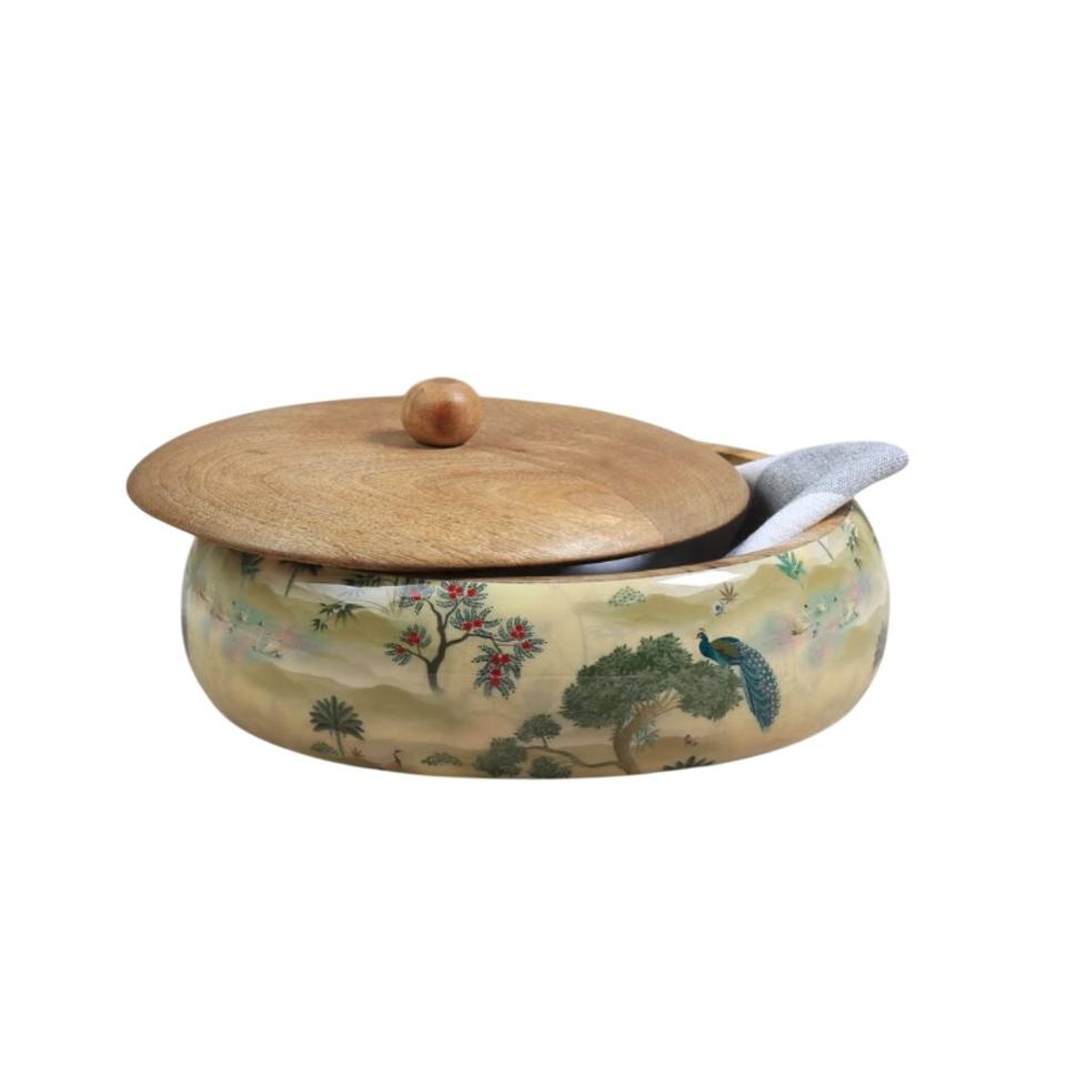 Caja de Madera Artesanal para Roti con Tapa, Recipiente para Chapati, Cazuela para Servir Comida Caliente y Fresca, Calentador de Alimentos Ecológico de Madera Sólida