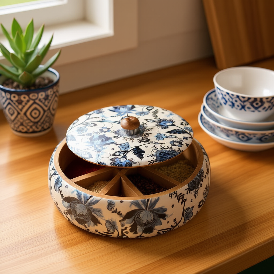 Caja de Madera Artesanal para Roti con Organizador de Especias, Contenedor de Chapati para Cocina, Artículo Decorativo para el Hogar