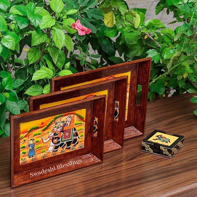 Bandeja de madera rectangular ecológica para servir, utensilios de cocina pintados a mano, lavavajillas, apto para alimentos, mesa de centro, hogar, cocina