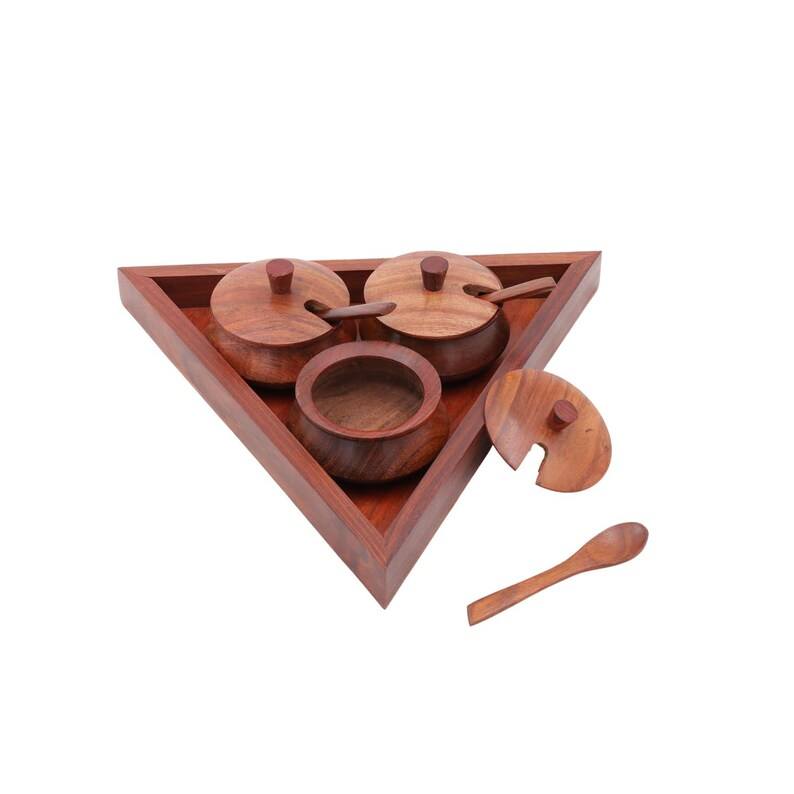 Juego de Cajas de Especias de Madera Hechas a Mano | Frascos Triangulares para Condimentos con Bandeja | Organizador de Almacenamiento para Cocina