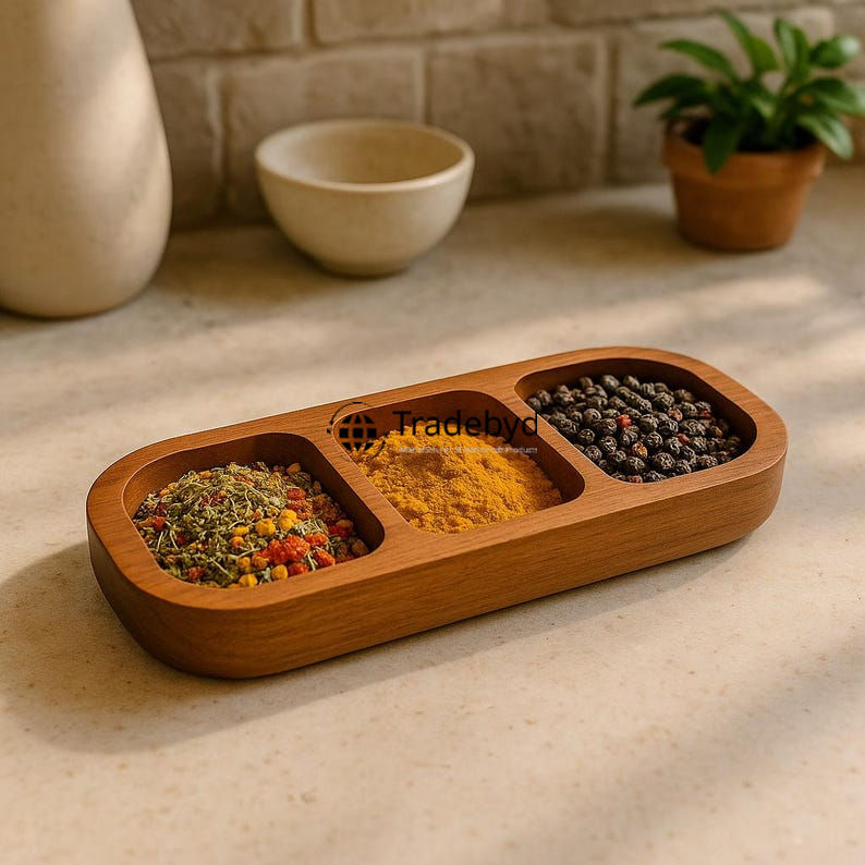 Caja de especias de madera hecha a mano para hierbas de cocina y organizador de Masala Tradebyd