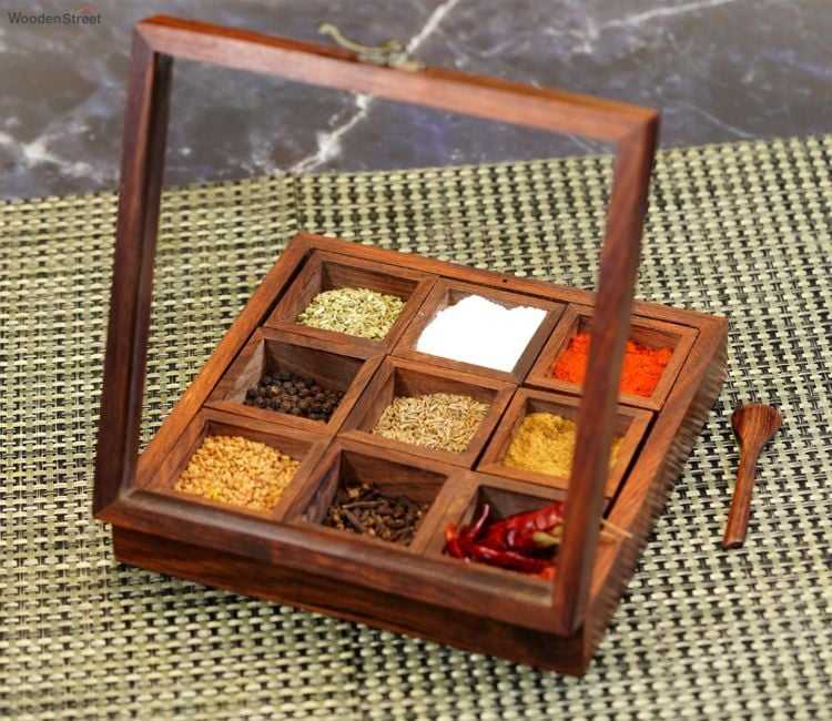 Nombre del producto:Caja de especias de madera con 9 contenedores
